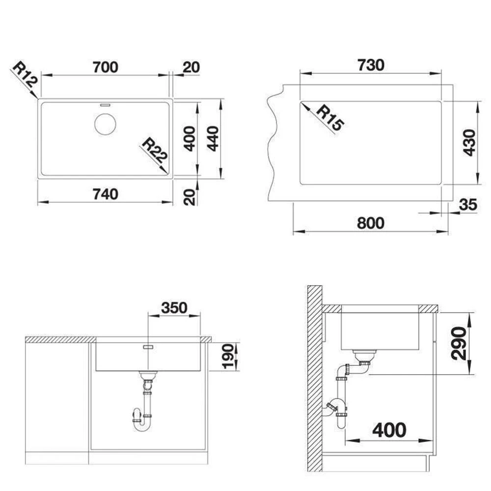 - Maße: B 740 x T 440 mm
