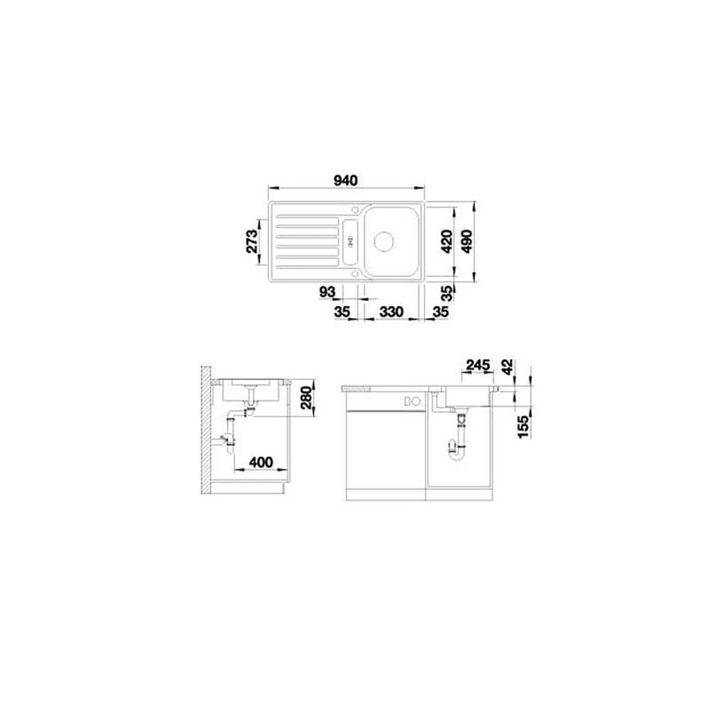 - Beckengröße: 330 x 420 x 155 mm / 93 x 273 x 42 mm