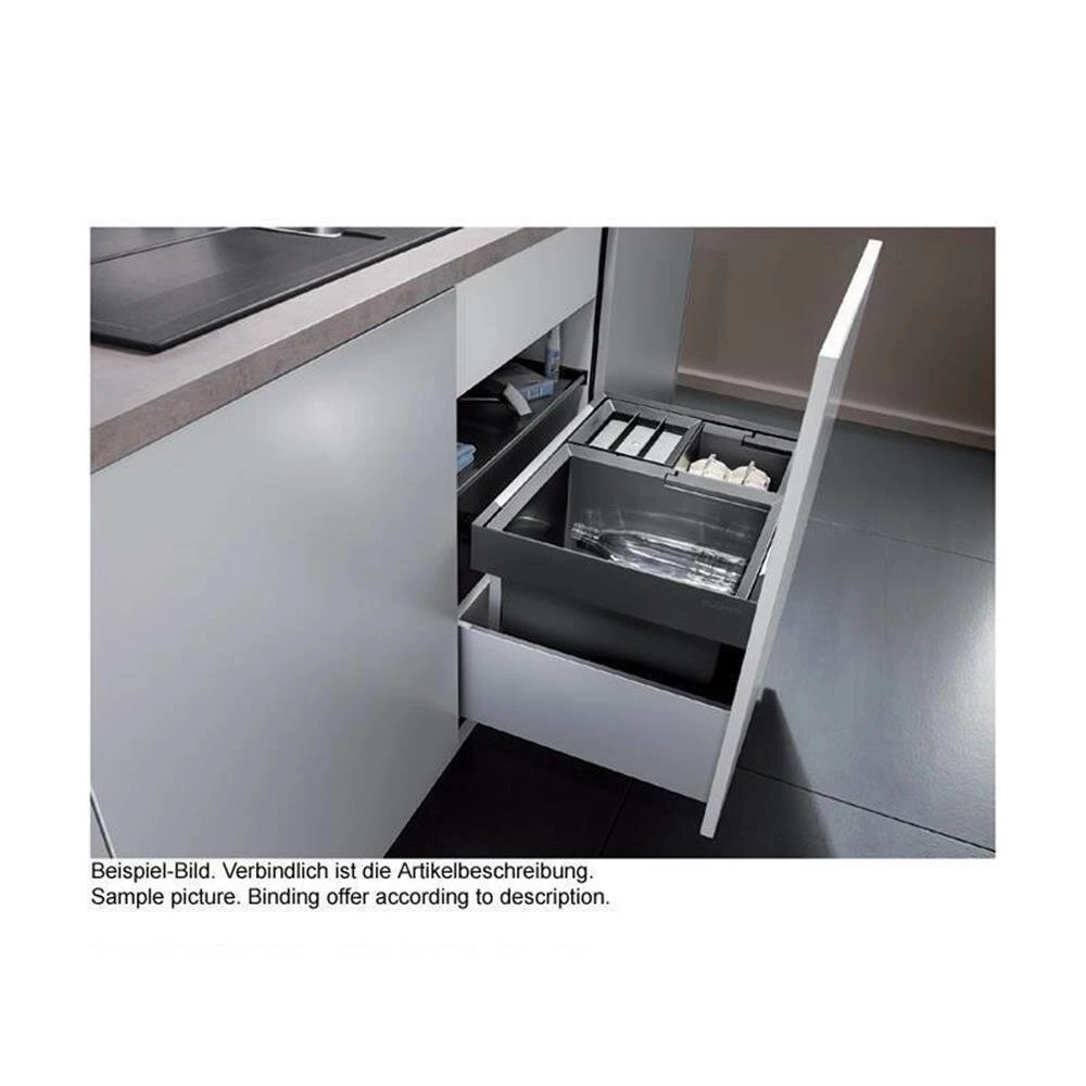 - Beachten Sie bei der Planung die Einbauhöhe des Abfallsystems, Höhe des Schubkastenbodens, Einbautiefe der Spüle mit Ablaufgarnitur und das daraus resultierende Mindestmaß für den Unterschrank