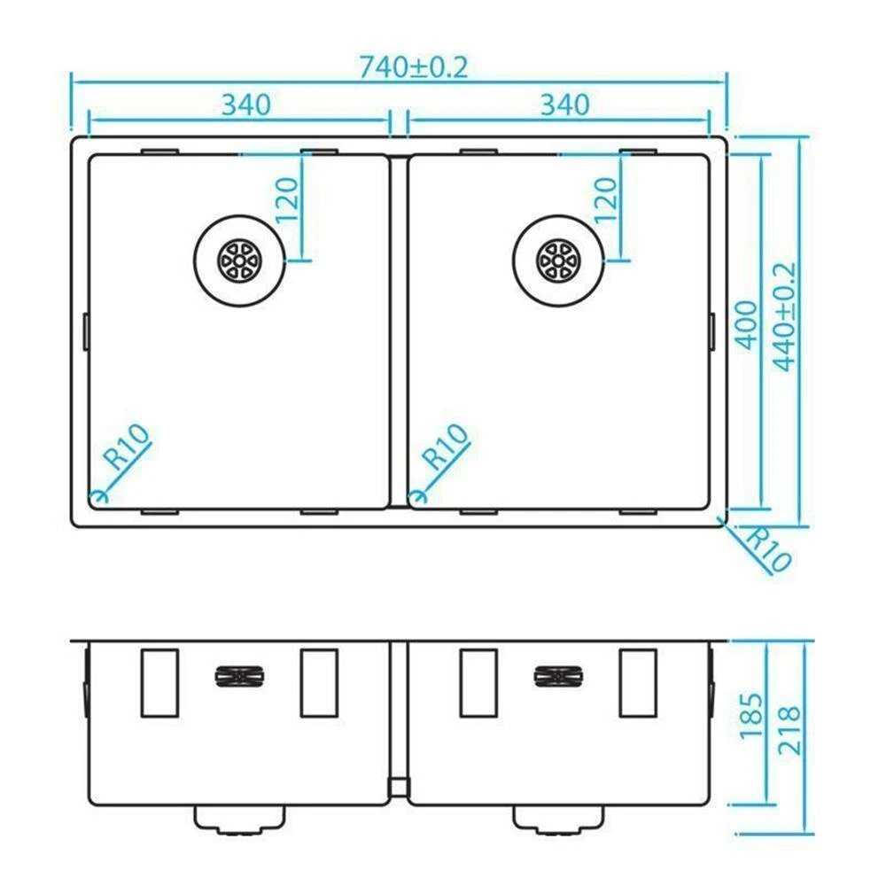 - Beckenabmessung: 2 x B 340 x T 400 x H 185 mm