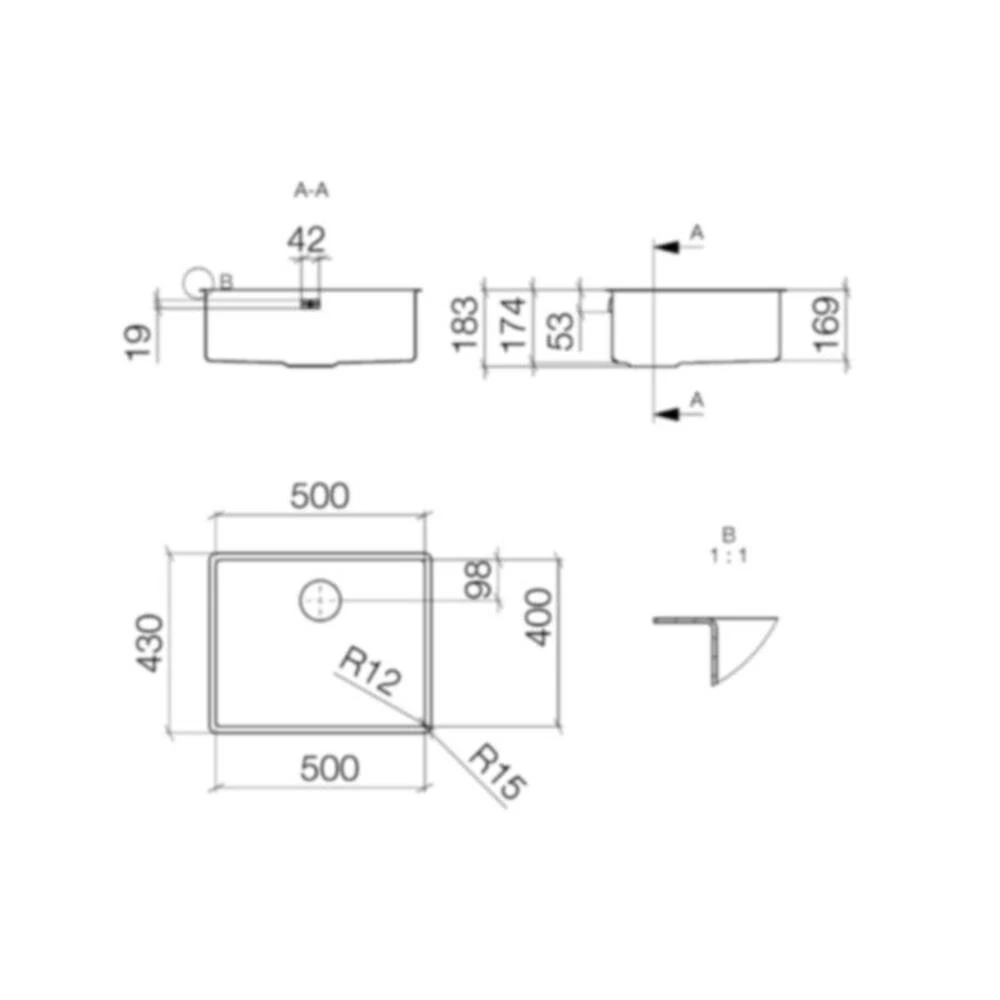 - Beckenabmessung: 500 x 400 x 175 mm