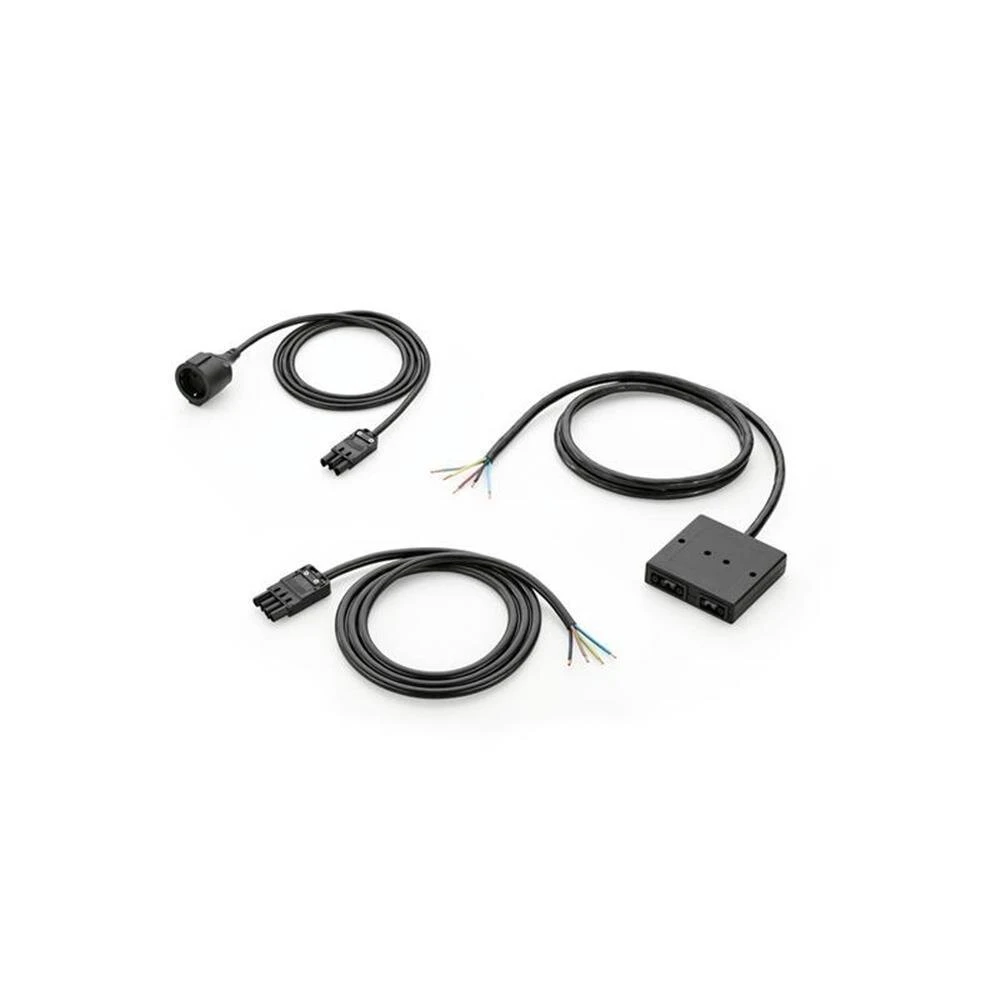 - 2 m Anschlusskabel (Dose – Box); je 2 m Ausgangskabel