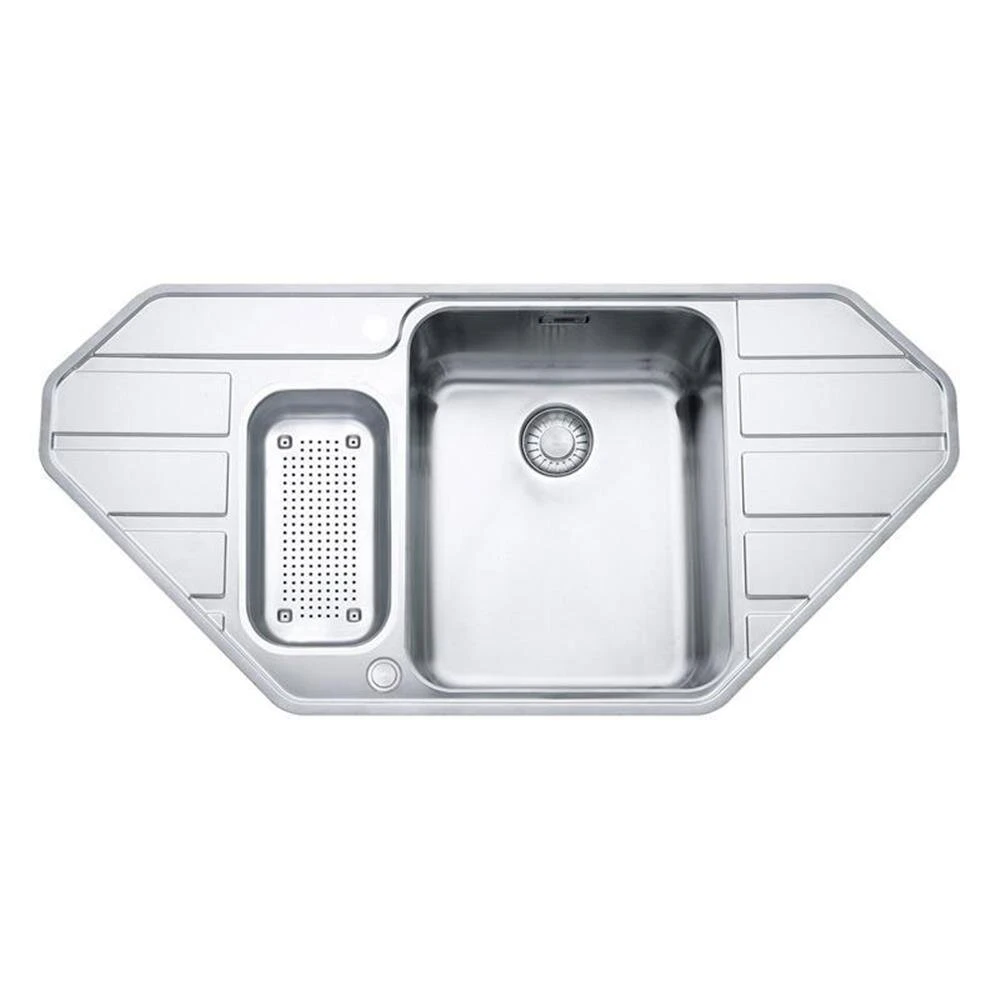 Die Franke Epos vereint elegante Formen mit überzeugenden Funktions-Highlights. Mit ihrem großzügigen Arbeitsbecken, der durchgängigen Arbeitsfläche – und tiefer konzipierten Abtropffläche lässt sie in puncto Ergonomie keine Wünsche offen. Als Eckspüle einbaubar in Eckunterschrank im Schenkelmaß 90 x 90 cm.