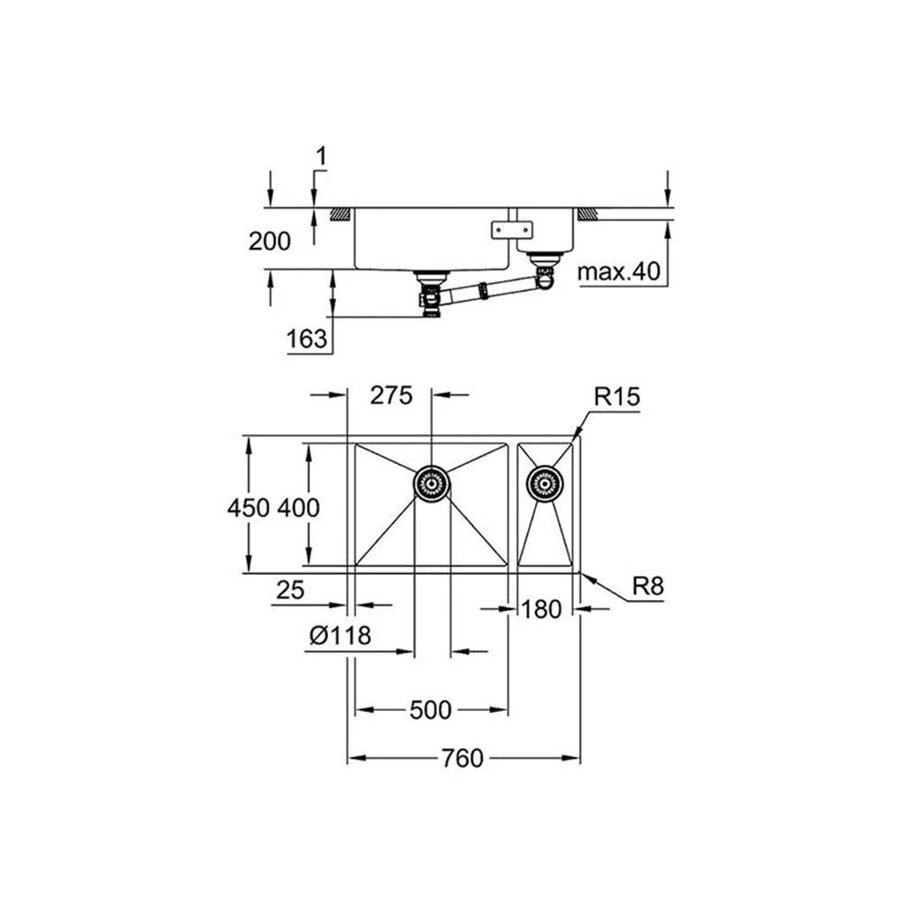 Grohe Unterbaubecken K700U Spüle 80-S 76/45 1.5 lh, Becken links, Edelstahl