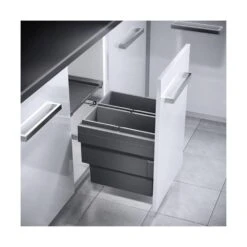 - Auszugsschienen: abgedeckter, gedämpfter Selbsteinzug mit synchronisiertem Überauszug