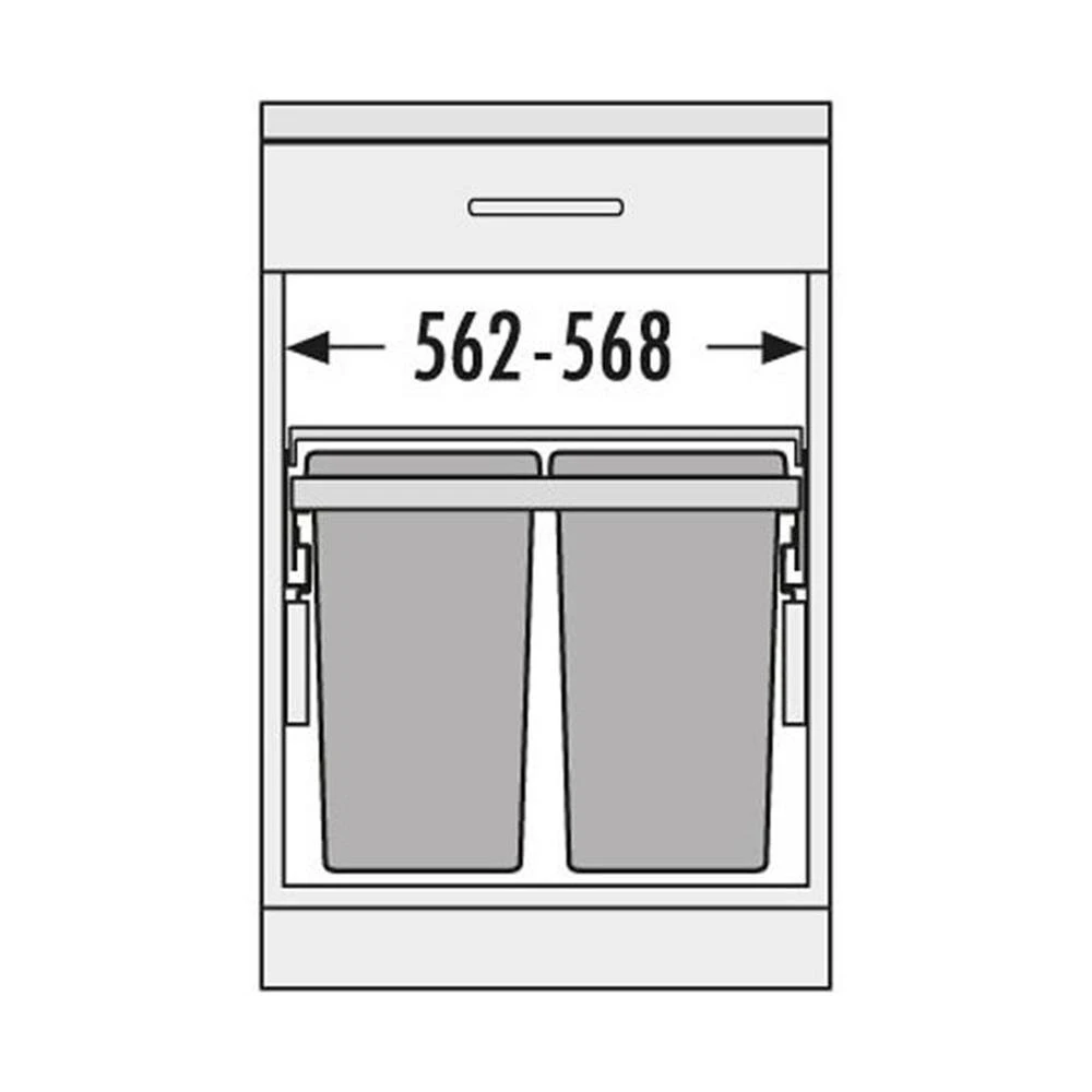 Einbau-Abfallsammler zum Einbau in 60 cm breiten Unterschrank/Spülenschrank hinter Auszugfront (Seitenwandmontage)