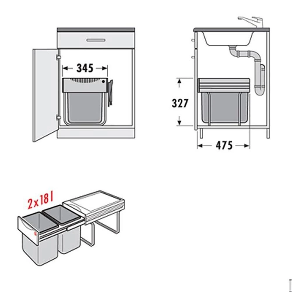 - Zweifach-Mülltrennung: Gesamtinhalt 36 Liter (2 x 18 Liter)