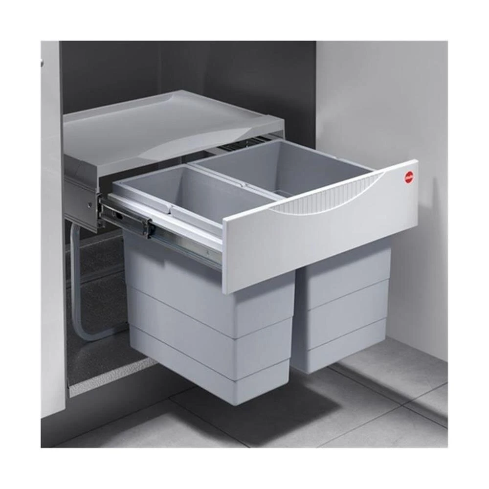 Hailo Raumpar-Tandem-S: das Erfolgssystem für Unterschränke mit Drehtüre; mit Vollauszug und 2- oder 3-fach Trennung. Der besondere Vorteil: die niedrige Bauhöhe und die geringe Einbautiefe von nur 330 mm.