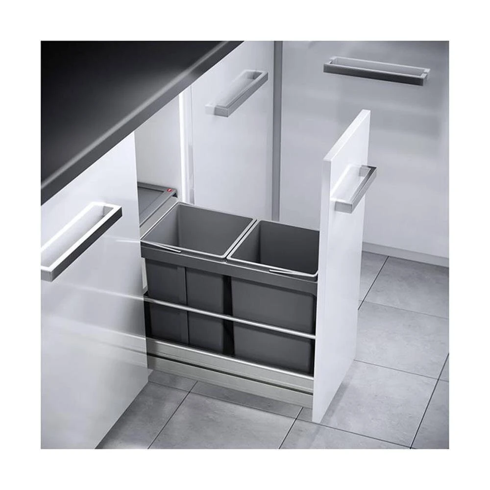 Hailo Tandem: Das Universaltrennsystem. Eingebaute Abfalltrennung in Unterschränken mit Drehtür oder Frontauszug. Wenig Platz im Schrank – viel Raum für den Abfall! Dafür hat Hailo die Lösung! Sortenreine Abfalltrennung auch für Schränke ab 275 mm Innenbreite. Das kompakte Zweifach-Abfalltrennsystem zeichnet sich durch ein großes Fassungsvermögen von insgesamt 30 Litern aus. Kinderleicht montiert, lässt der stabile Abfallsammler noch viel Raum in den Schränken.