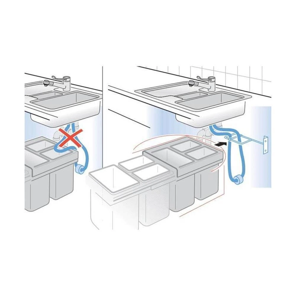 Zwangsführung für alle handelsüblichen Schlauchbrausen-Armaturen. Zur Kollisions-Verhinderung des Armaturen-Schlauchs mit weiteren Installationen oder Einbauten im Spülenschrank.