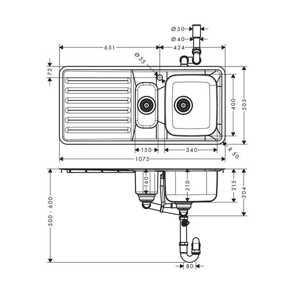 hansgrohe Einbauspüle 340/150/400 S4111-F540 | Edelstahl – Hochwertige Edelstahl-Küchenspüle mit zwei Becken und praktischer Ablaufgarnitur