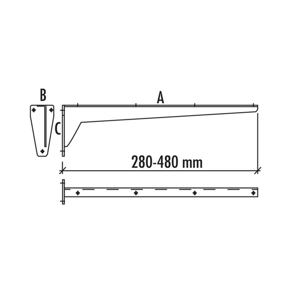 - Ausladung (Länge) A 280 mm / Flanschbreite oben B 53 mm / Höhe C 100 mm
