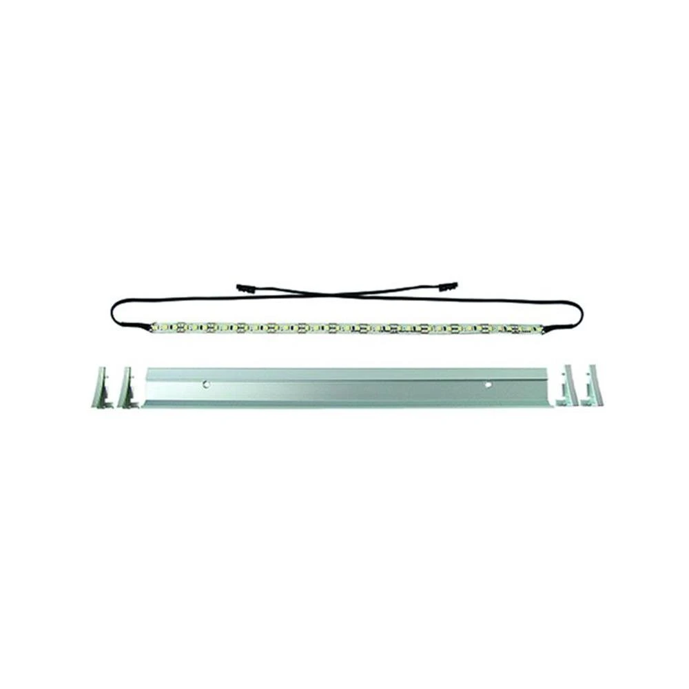 - Aluminiumprofil (edelstahlfarbig) mit transluzenter Kunststoff-Abdeckung (leicht schräg gestellt für optimale Ausleuchtung der Küchennische)