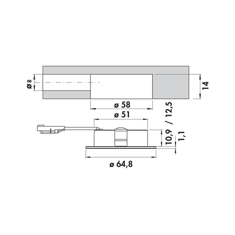 Diese Leuchte ist eine Einbauleuchte: Einsatz üblicherweise in Unterböden bzw. Abdeckböden unterhalb von Hängeschränken.