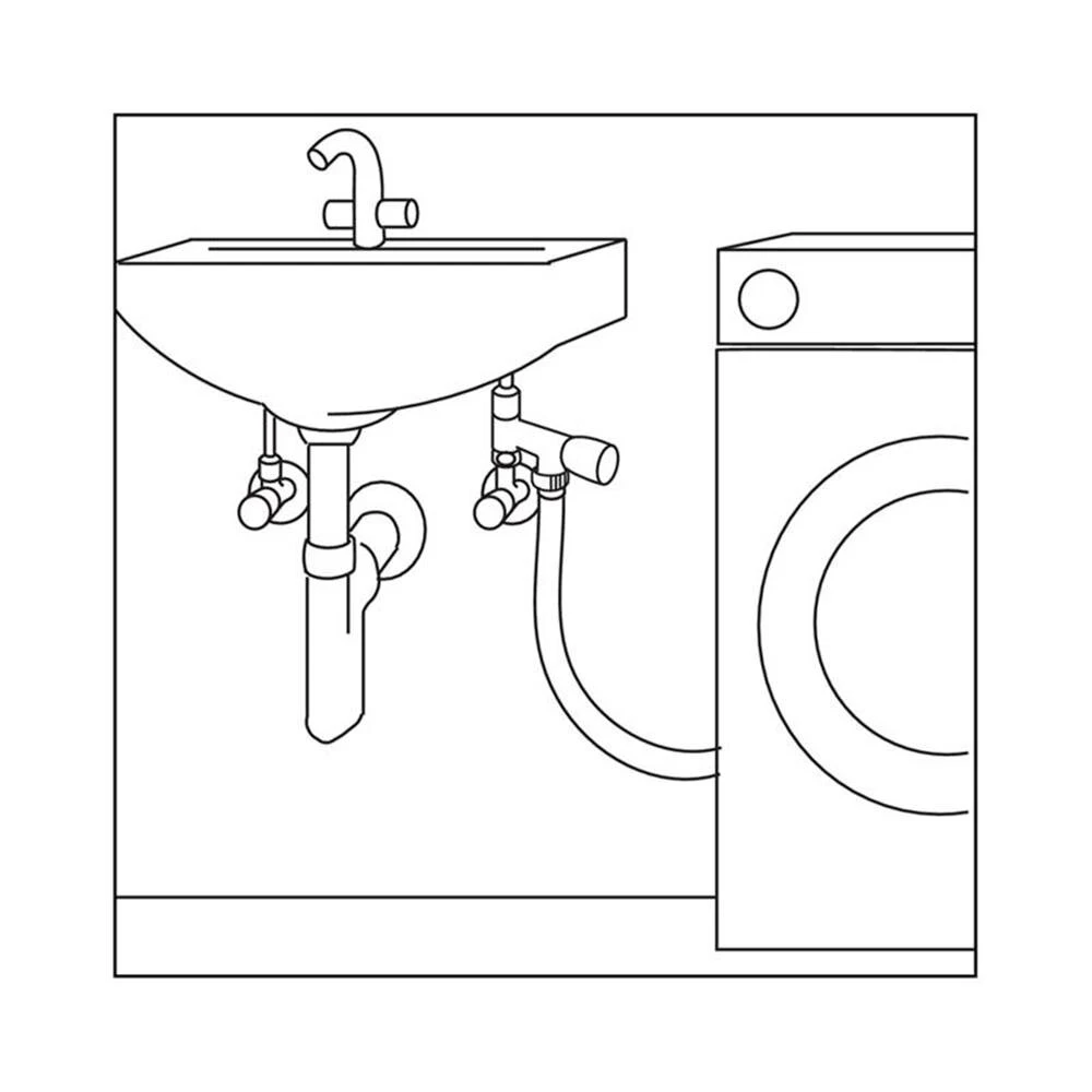 Geräteanschlussventil für den Einsatz in der Küche oder im Badezimmer. Eckventil-Anschluss, mit Kronengriff und Längenausgleichsverschraubung, inkl. Rückflussverhinderer,