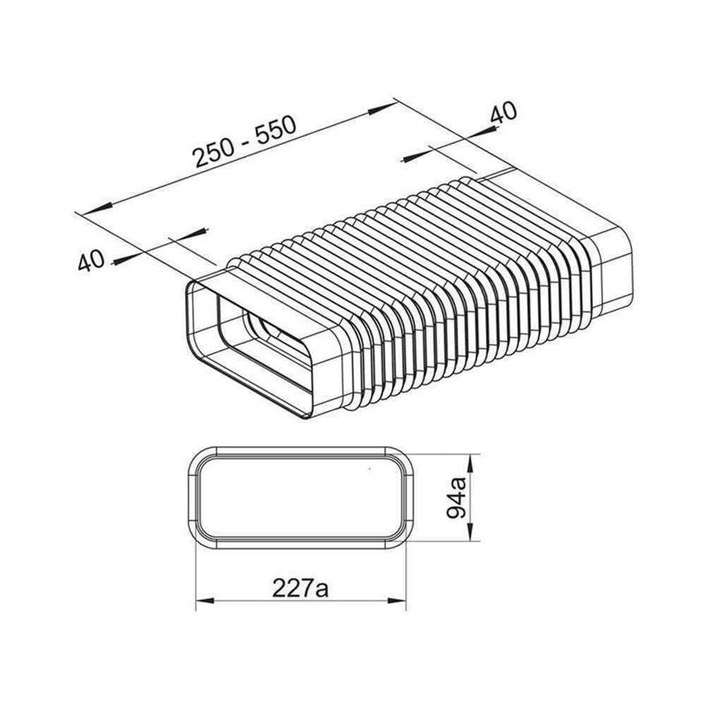 Adapter, flexibel, eckig auf eckig, mit angeformter Muffe.