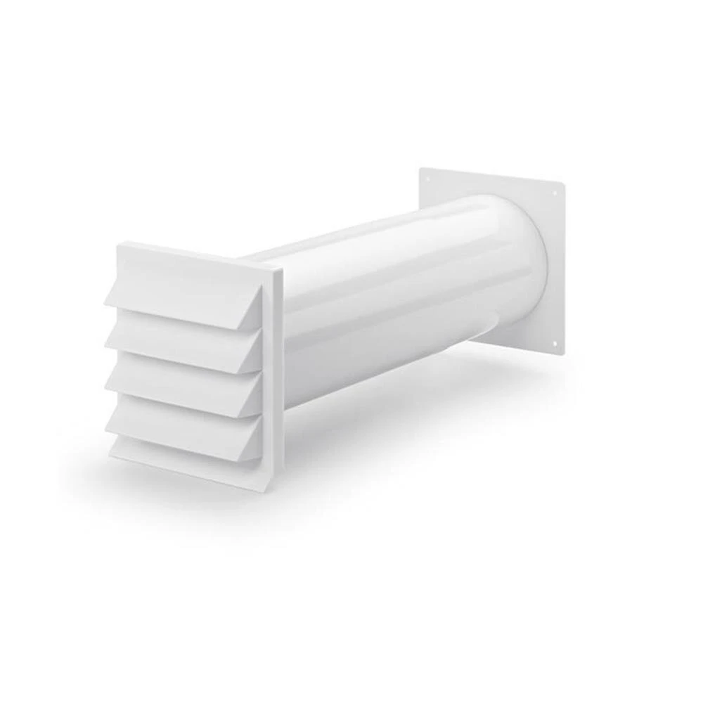 Mit Rückstauklappe, Teleskoprohr und Außenjalousie. Mit Rundrohr-Aufnahme für COMPAIR® flow 150.