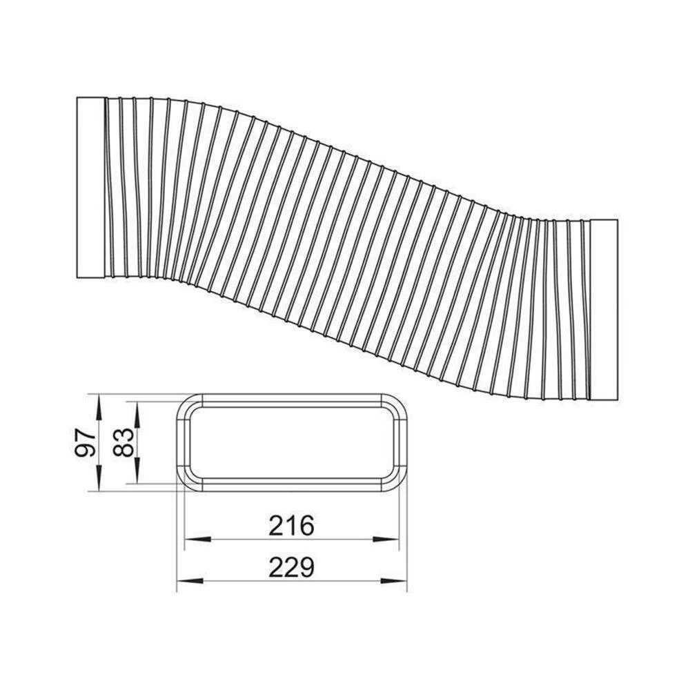 - Anschlussmaß Metallkanal: 216 x 83 mm (mit Dichtung)