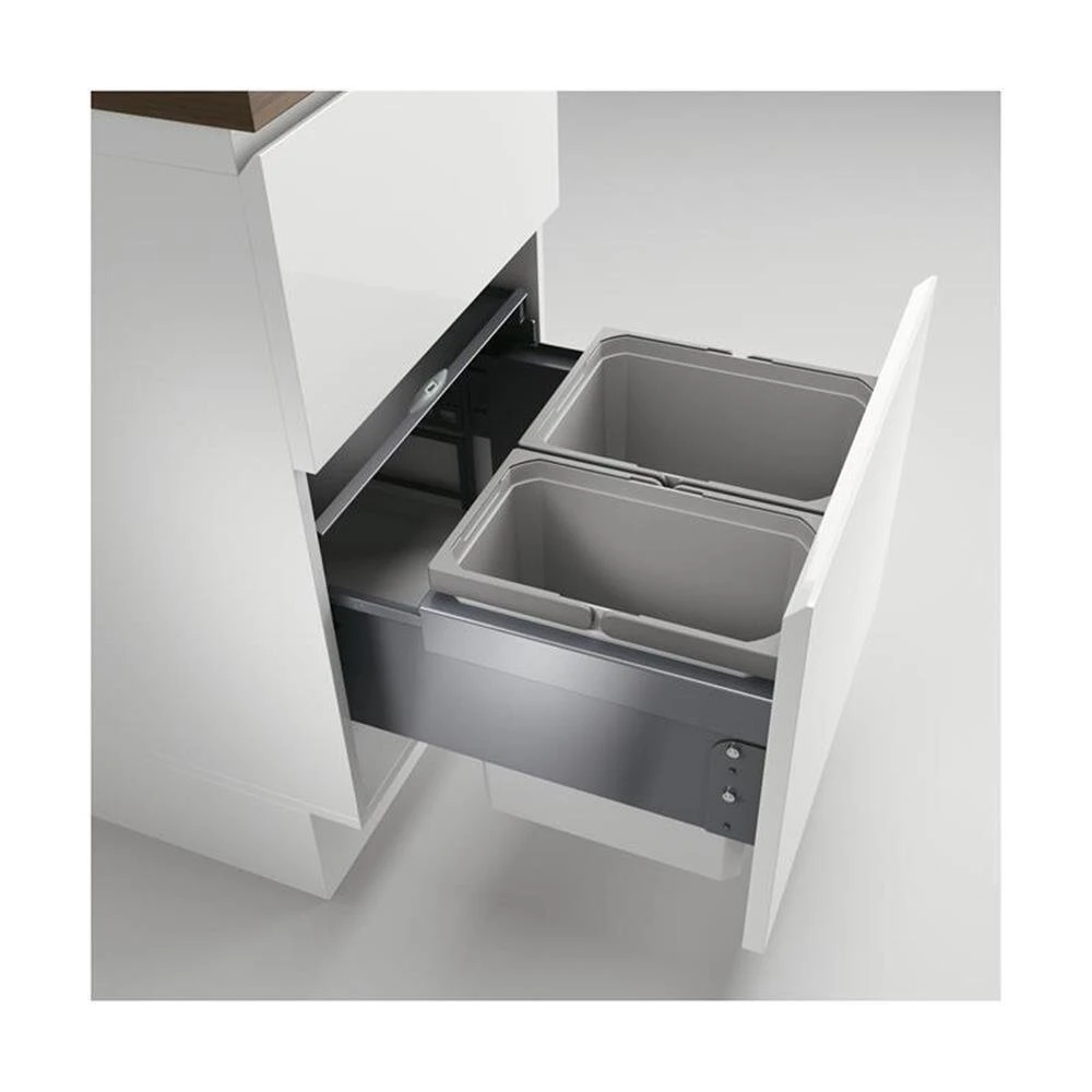 - Abfallvolumen: 27,5 (1×15,5+1×12) Liter, mit oder ohne Biodeckel