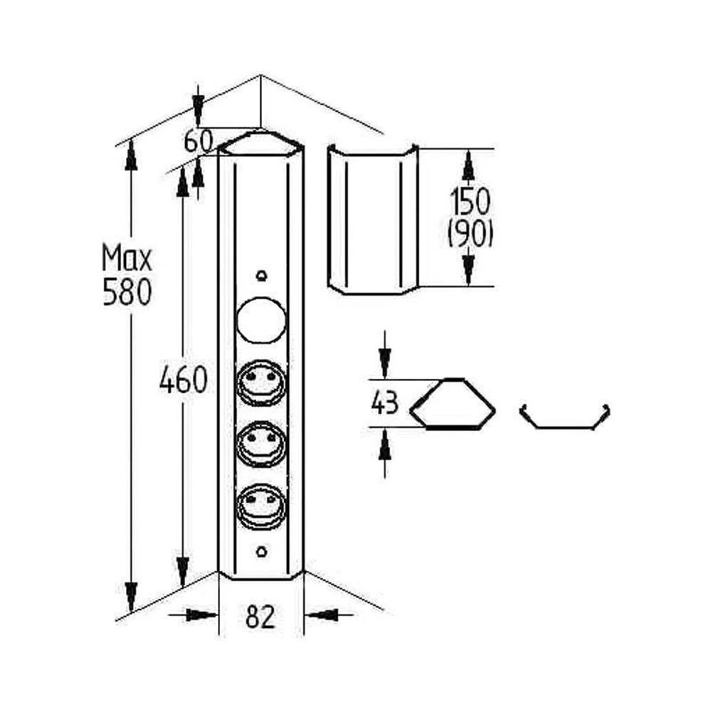 Eck-Steckdosenelement. 3-fach und Schalter für externe Beleuchtung.