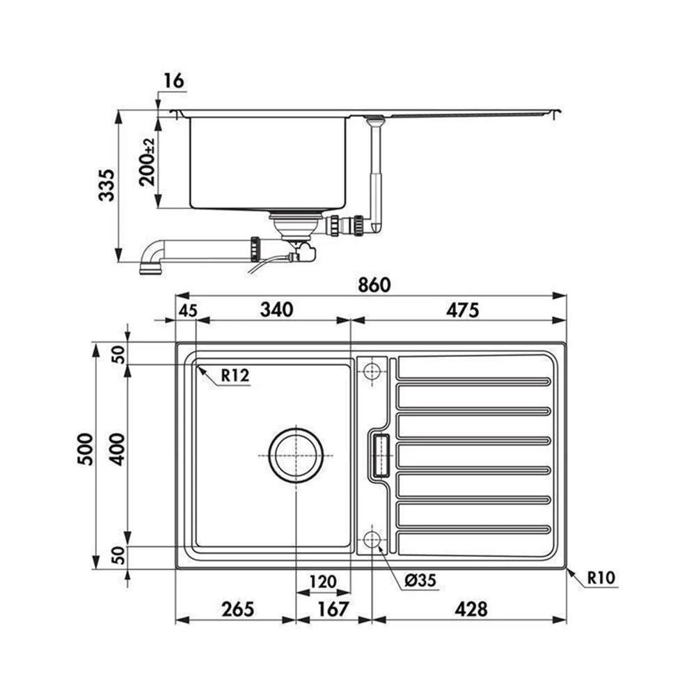 - Spülenmaß: B 860 x T 500 mm