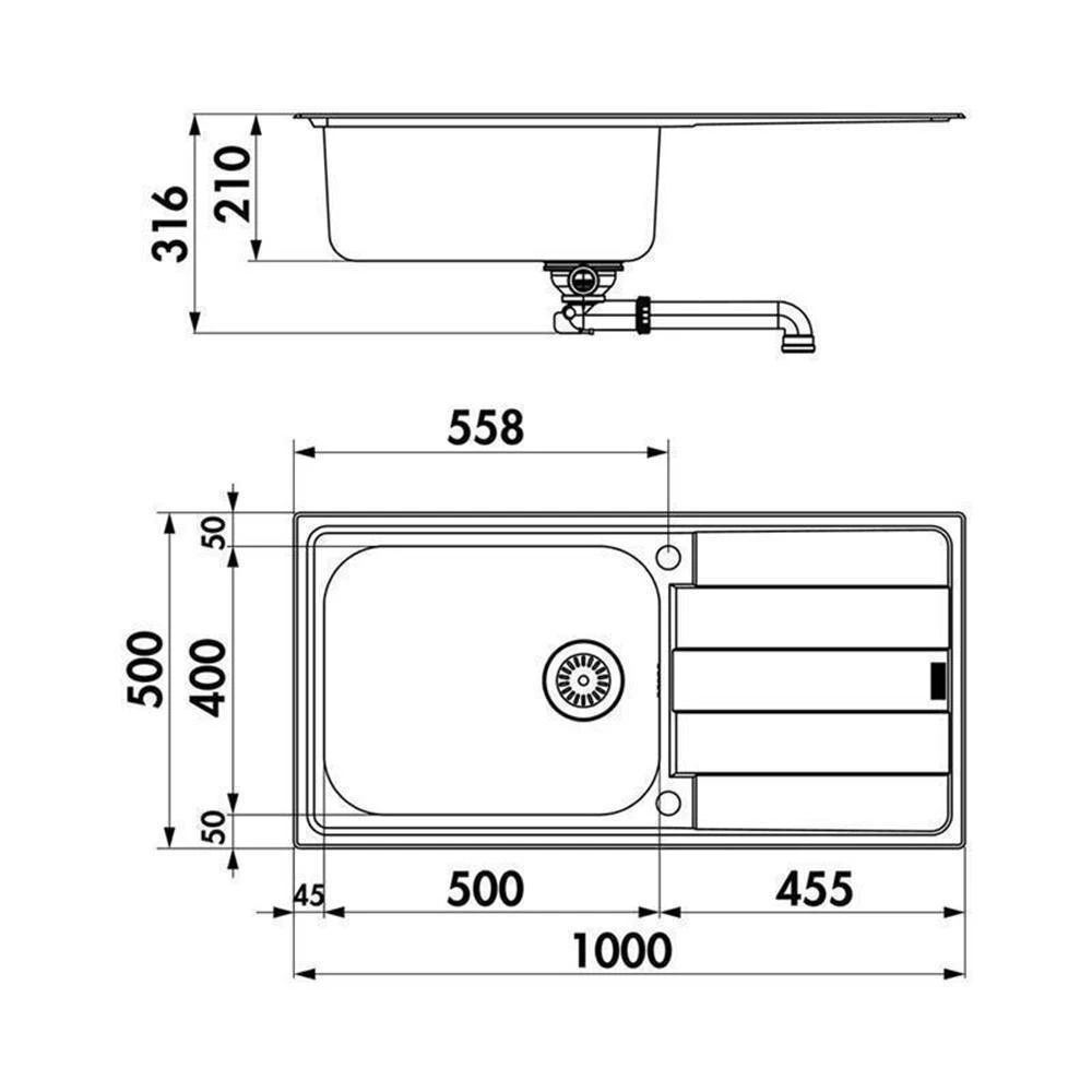 - Spülenmaß: B 1000 x T 500 mm