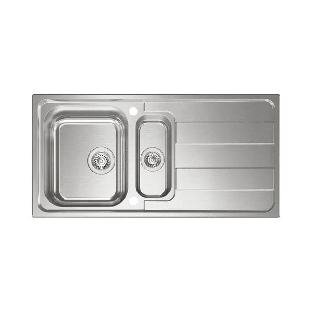 - Edelstahlspüle mit Abtropffläche, Restebecken und Armatur Drive 2