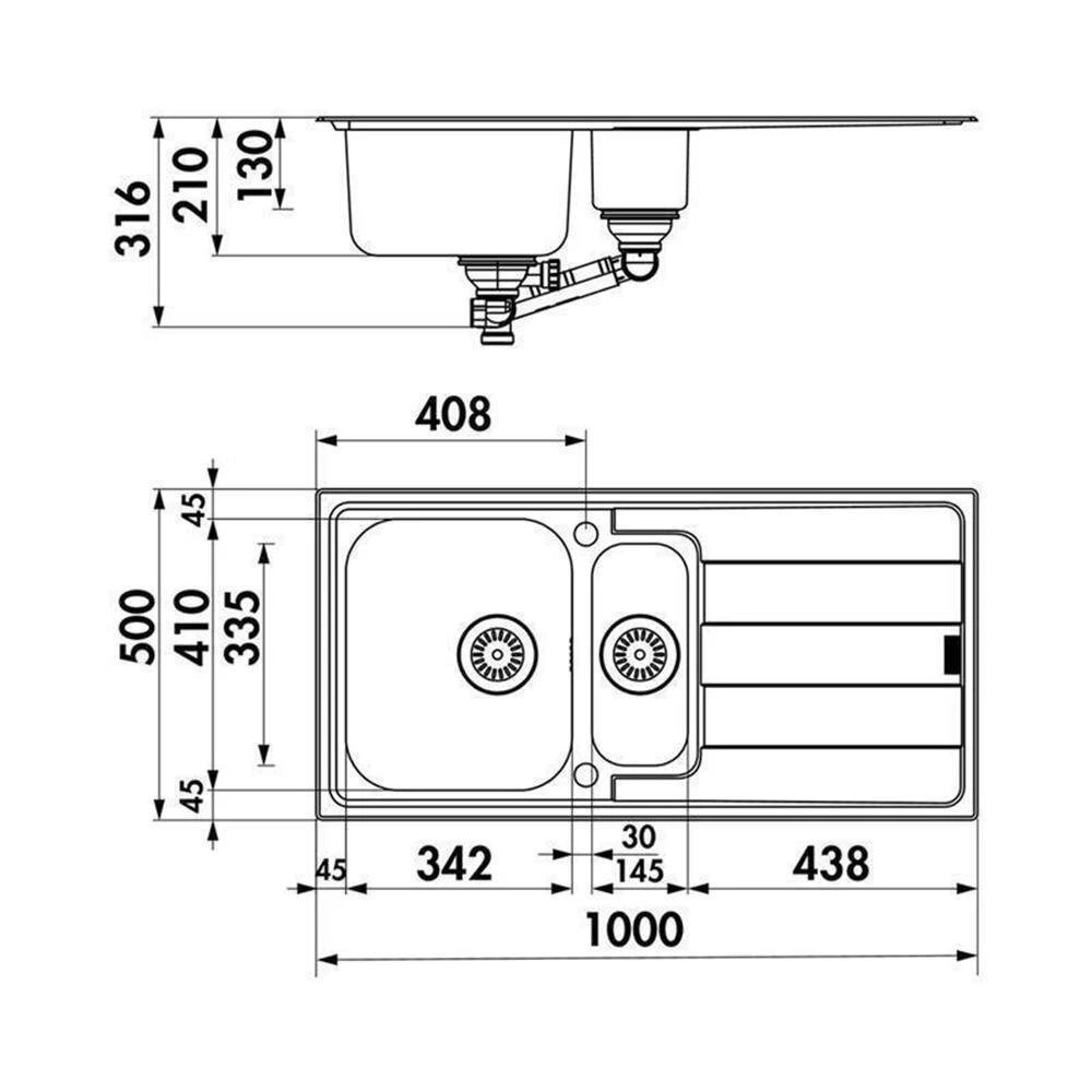- Restebecken: 145 x 335 x 130 mm