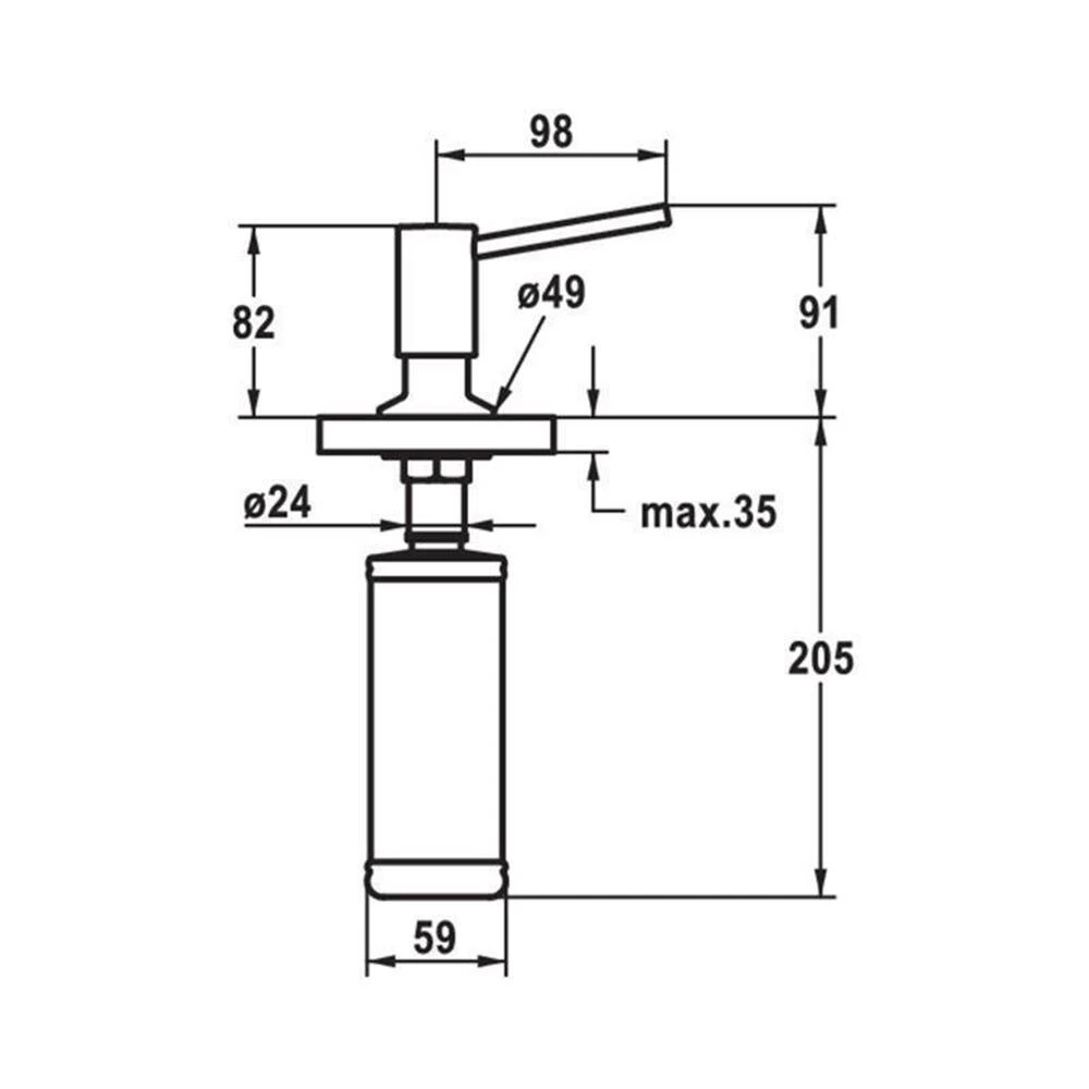 Der einfach zu montierende Spülmittelspender überzeugt durch korrosionsbeständige Materialien, einfache Reinigung und unkompliziertes Nachfüllen ohne Ausbau des Dispensers