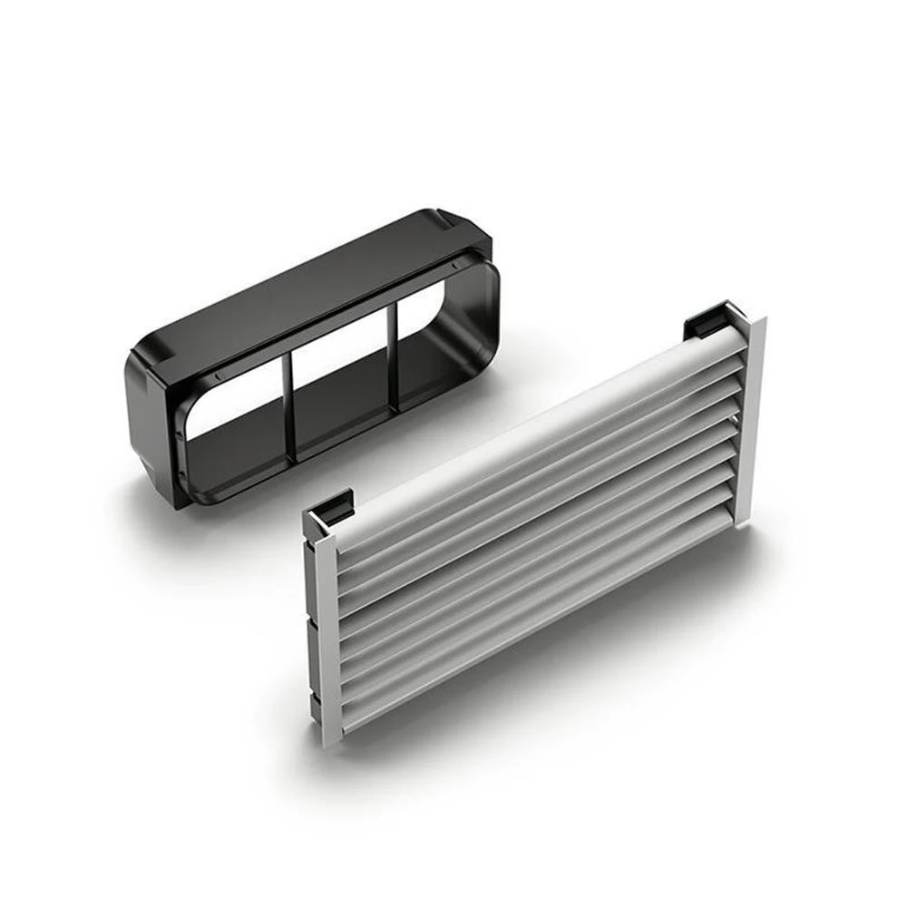 Lamellenlüftungsgitter aus eloxierten Aluminiumprofilen. Für kanalgeführte