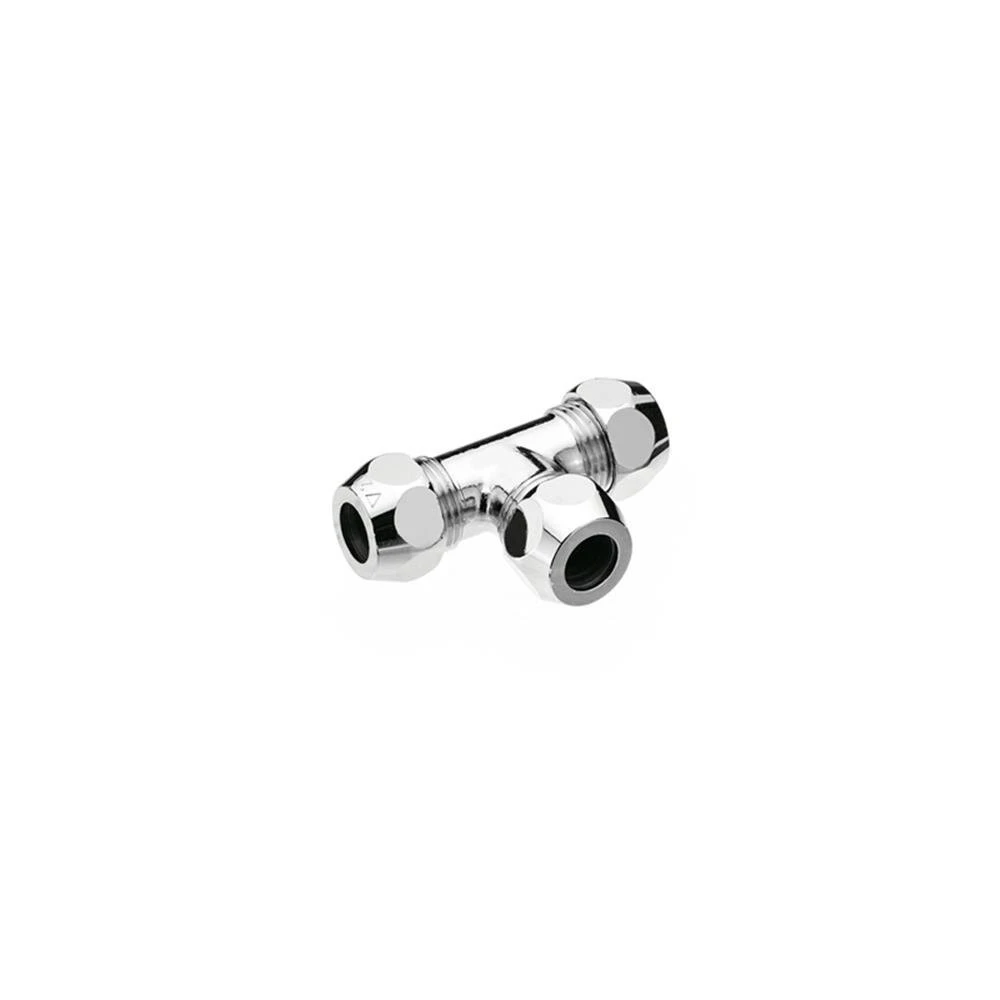 T-Verschraubung verchromt mit 3 Quetschverschraubungen.
