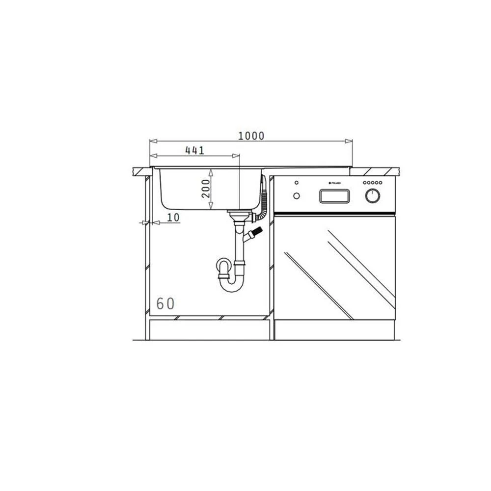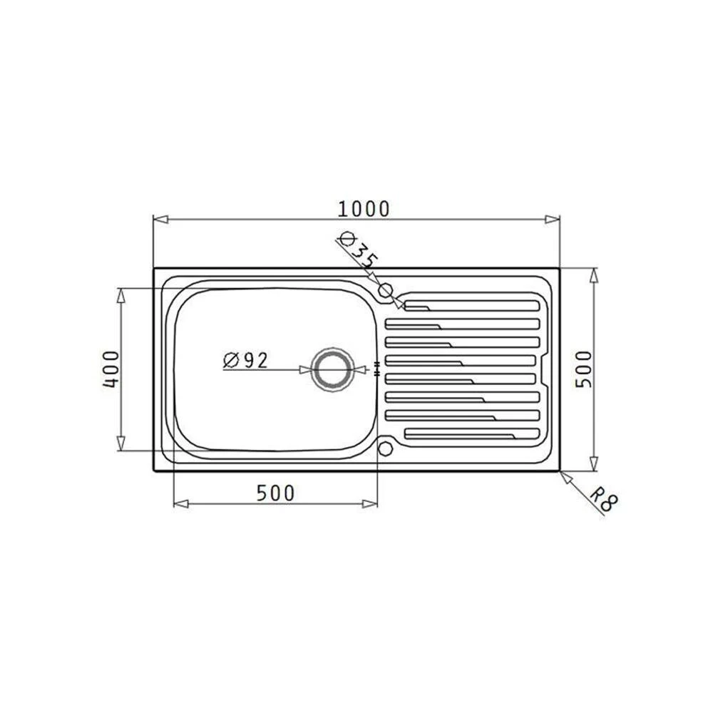 - Spülenmaß: B 1000 x T 500 mm