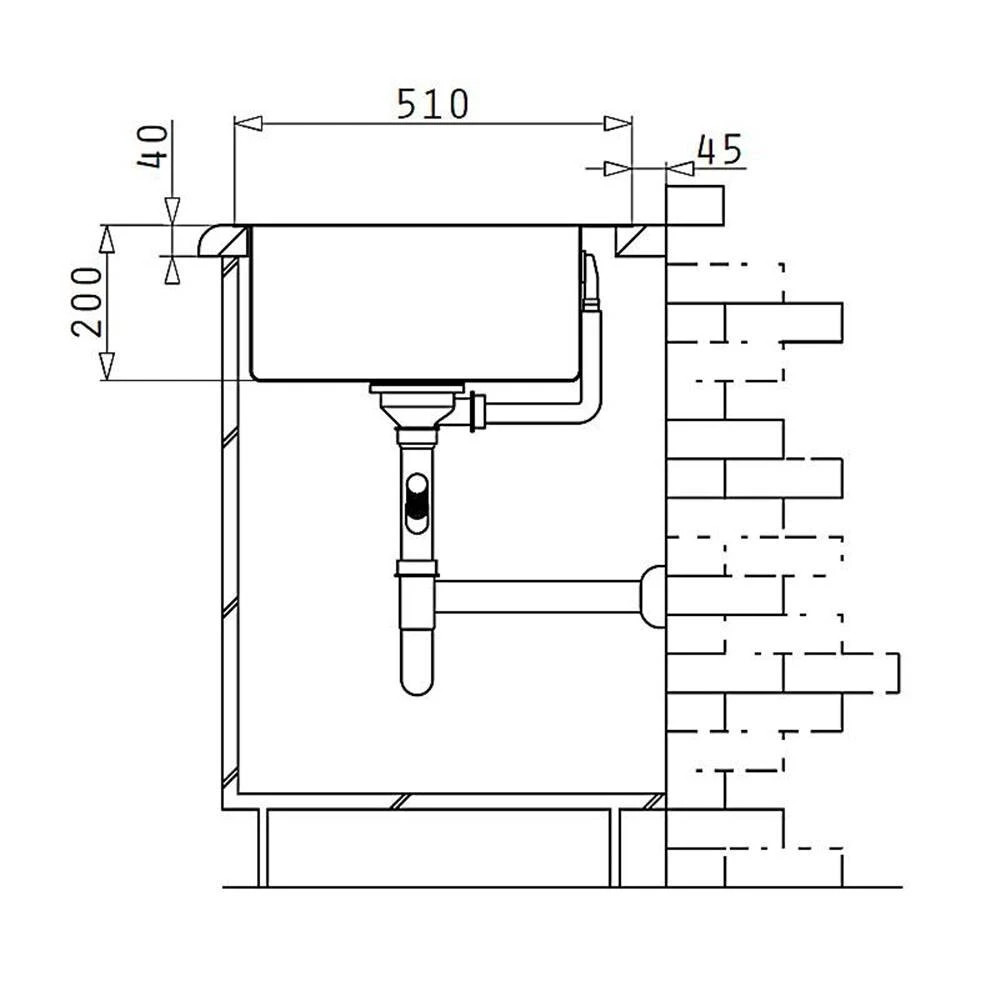 - 2 Hahnlöcher (für Küchenarmatur und Excenter-Bedienung)