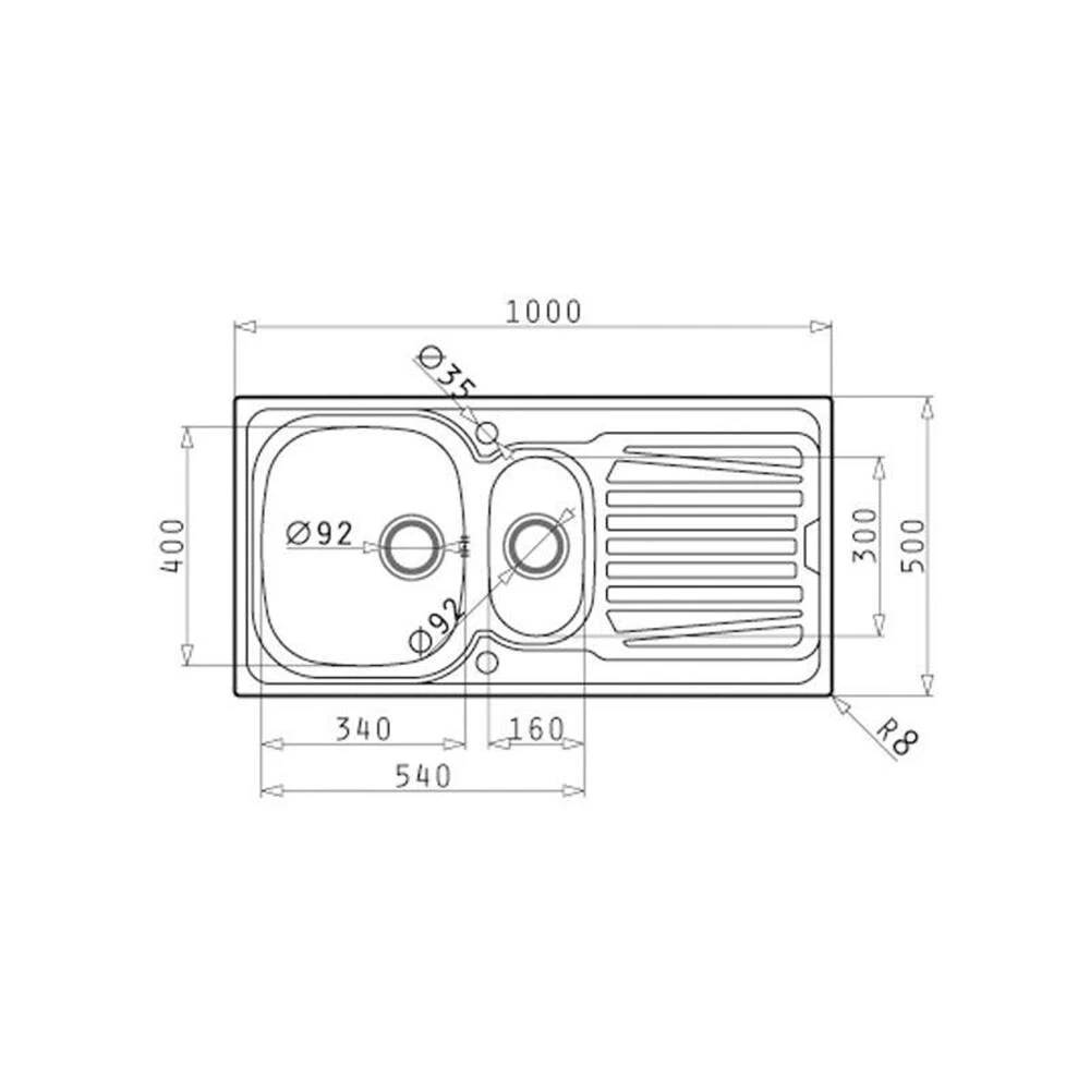 - Beckenabmessung: 340 x 400 x 150 mm / 160 x 300 x 90 mm