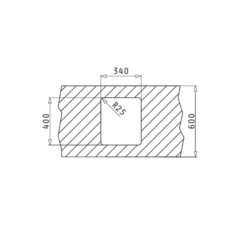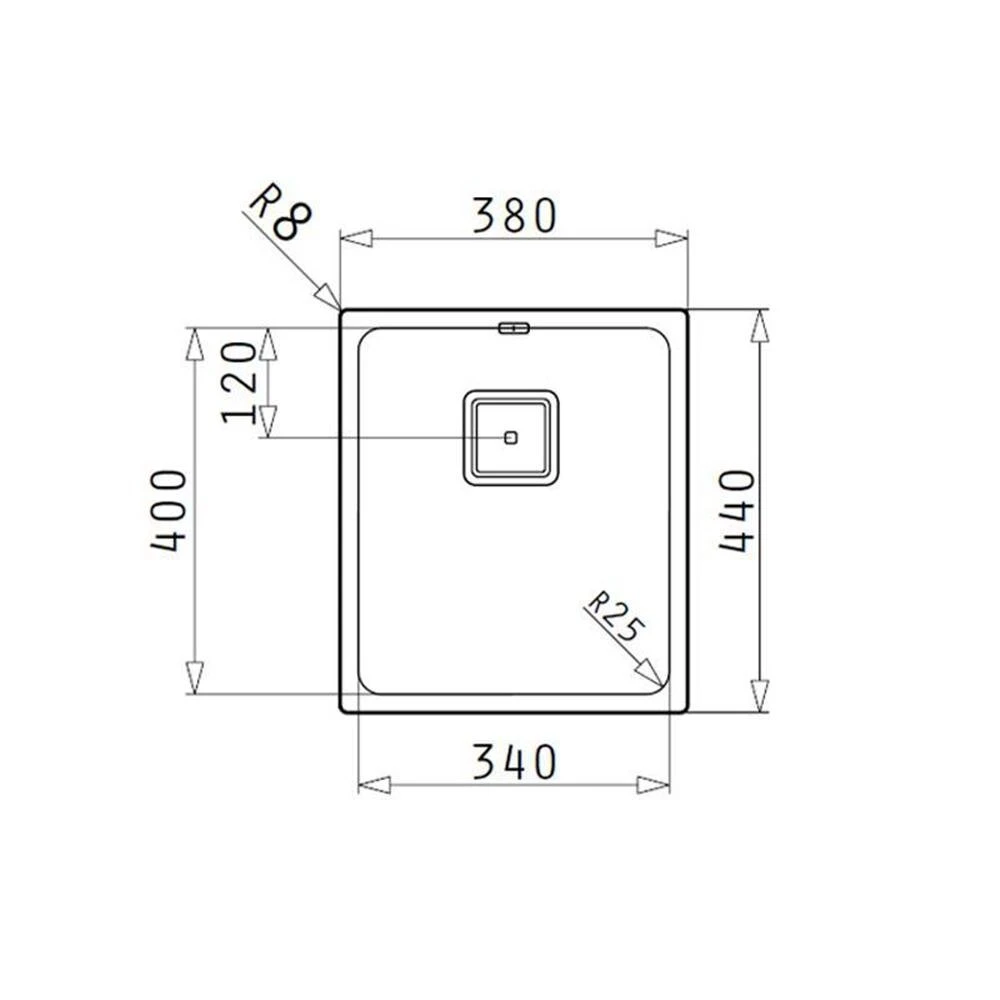 Unterbaubecken mit 25 mm Radius und eckigem Ablauf.