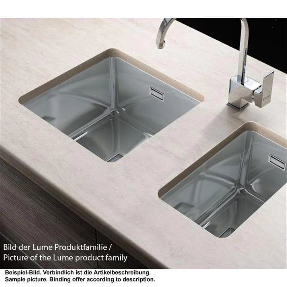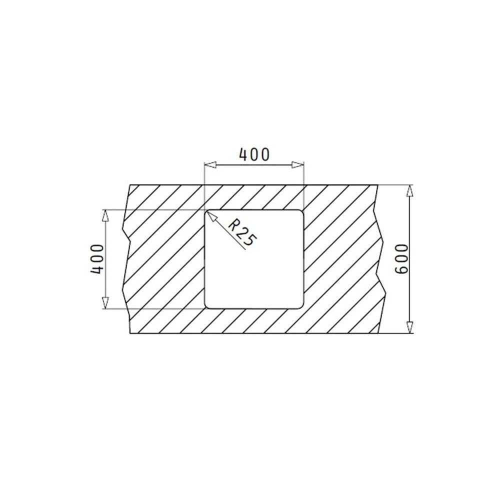 Unterbaubecken mit 25 mm Radius und eckigem Ablauf.
