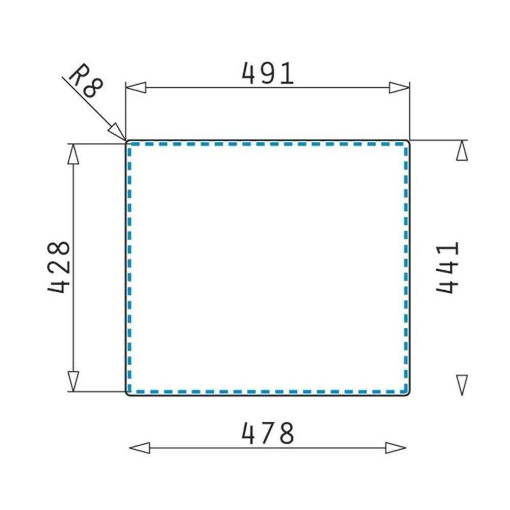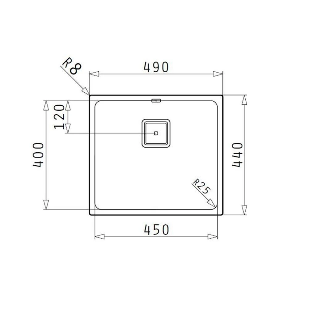Unterbaubecken mit 25 mm Radius und eckigem Ablauf.
