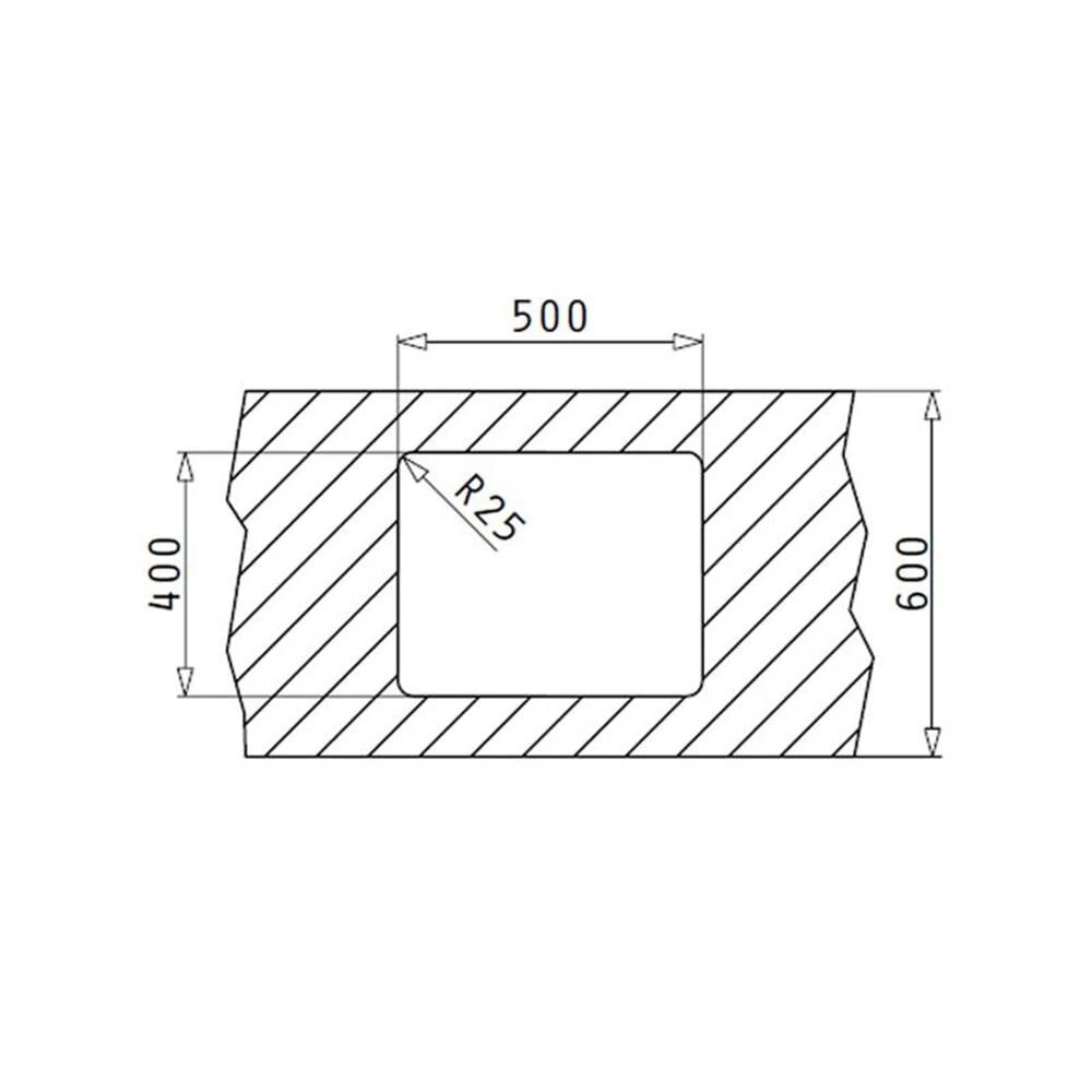 Unterbaubecken mit 25 mm Radius und eckigem Ablauf.