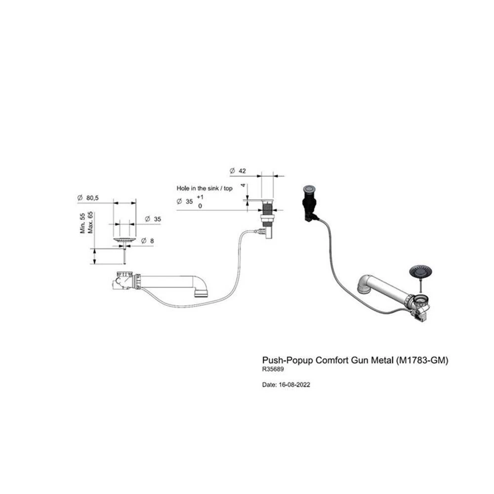 Reginox Druckknopfexzenter Set M1783 Gun Metal Silver nur geeignet für New York Gun Metal Silver – Comfort