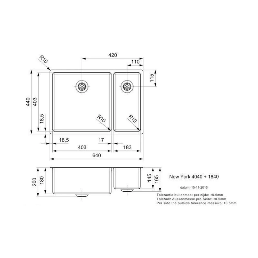 - Spülenmaß: 640 x 440 mm