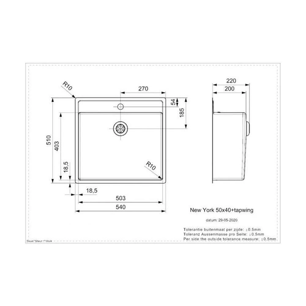 Reginox Einbaubecken New York 50×40 Hahnlochbank