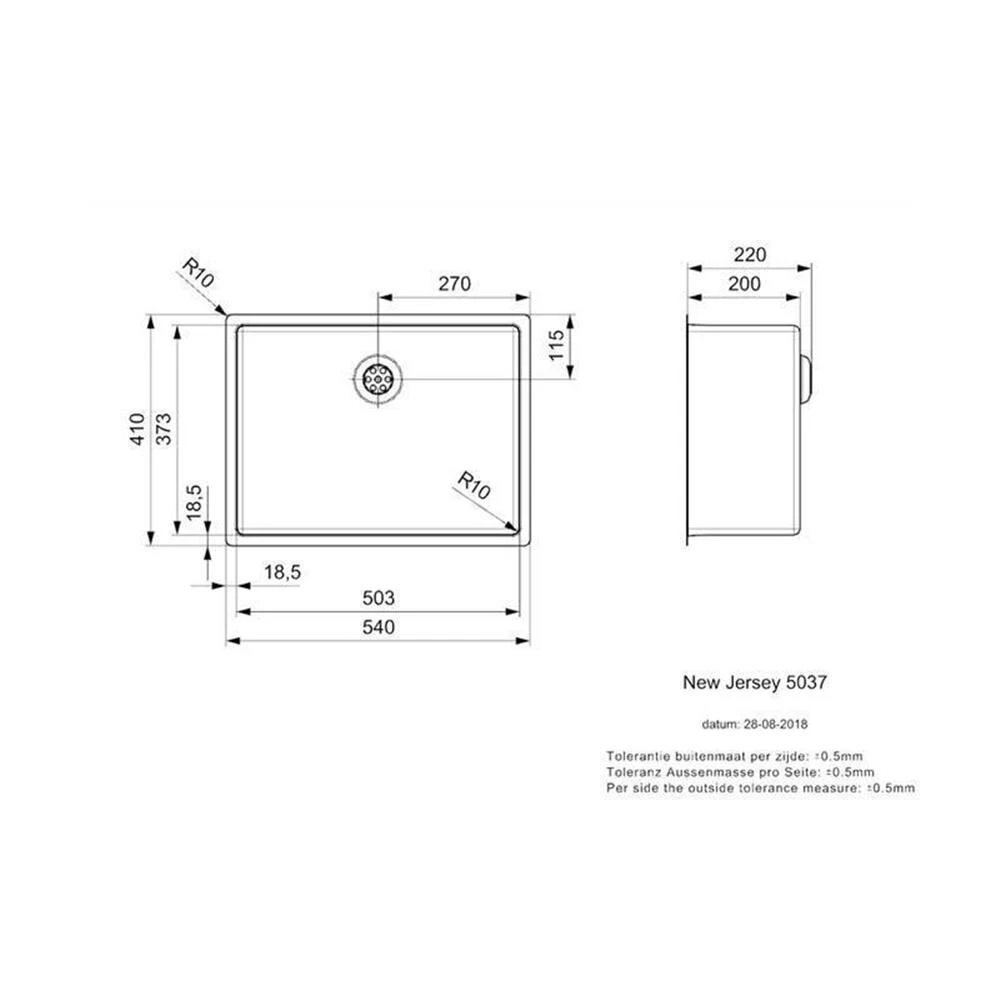 Auch die New Jersey ist ein modernes Designspülbecken mit einem Innen- und Außenradius von 10 mm und einem tiefgezogenen Integralablauf. Der Unterschied zum Spülbecken New York liegt in der etwas geringeren horizontalen Tiefe (37 cm anstatt 40 cm).