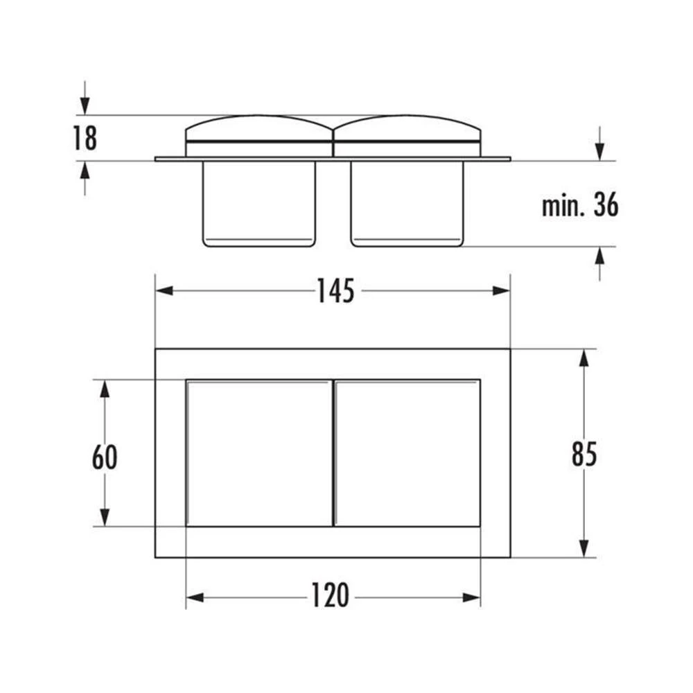 - Maße: H=85 mm, B=145 mm, T= mindestens 36 mm